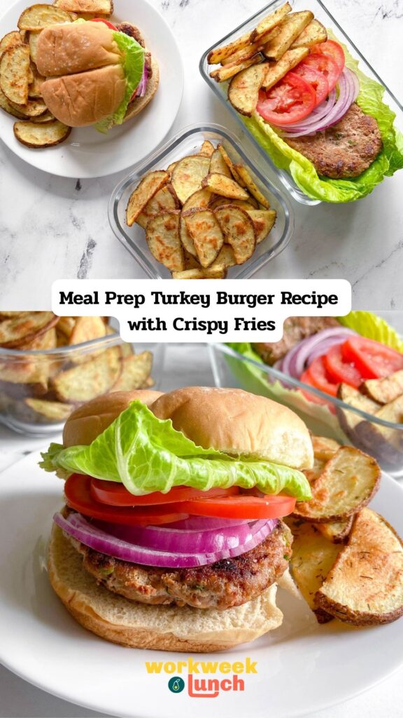 Turkey burgers are a fantastic meal prep option because theyโre lean, flavorful, and versatile. Pair them with crispy baked fries or swap in sweet potatoes, salad, or roasted veggies for variety. They also freeze well, so you can prep extras for future weeks. Recipes like this are exactly what we feature in the Workweek Lunch Meal Planner โ flexible, satisfying meals that donโt get boring.